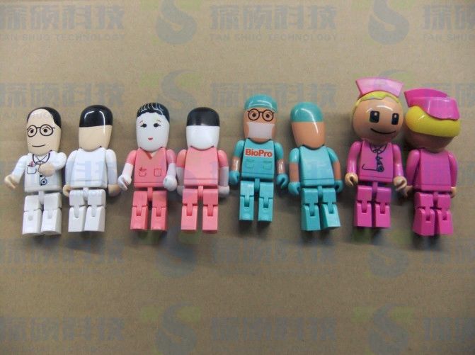 探碩科技推薦5月1日勞動節就送醫生禮品U盤最好,外觀材質采用塑膠,可以印刷不同人的表情和衣服顏色,有女護士U盤和男醫生U盤造型,醫生U盤每個關節就可以活動自如,辦公攜帶方便。