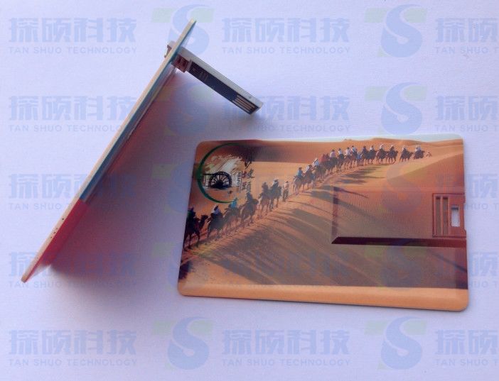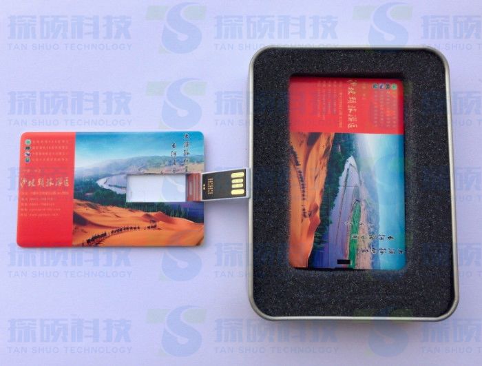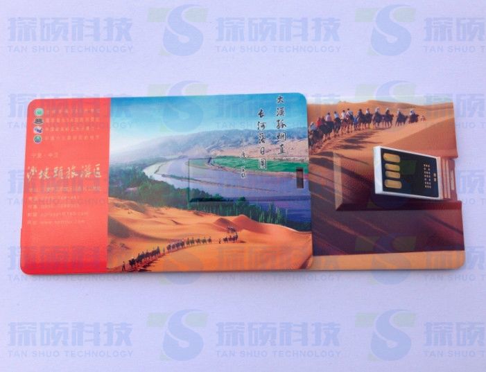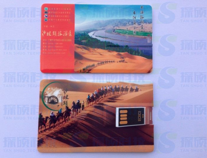 寧夏沙坡頭旅游景區有限責任公司定制翻轉卡片U盤,采用高清彩印,防水功能,攜帶方便,尺寸:85x52x2MM