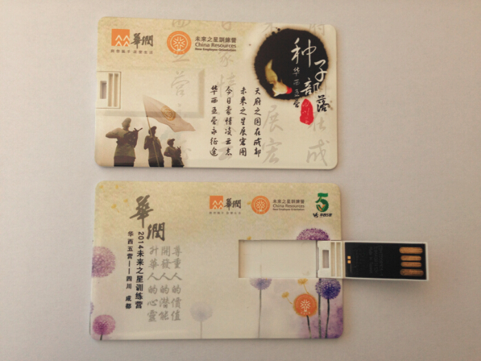 這款高清超薄卡片U盤是華潤集團定制的中秋節(jié)禮品,材質(zhì)采用塑膠表面噴油處理在雙面高清彩印,芯片采用原裝防水防塵,是公司節(jié)日禮品最佳定制,卡片尺寸:85MMx52MMx2MM