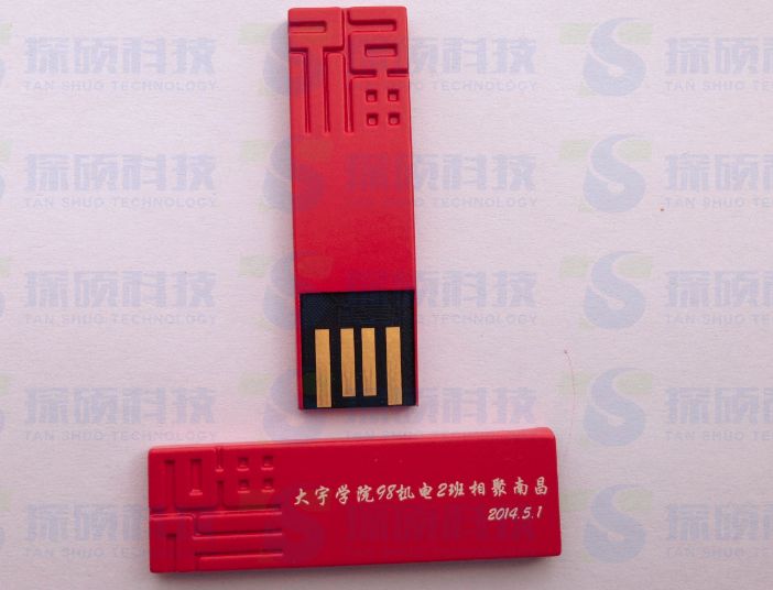 這款金屬迷你U盤是大宇學院定制的禮品U盤,外觀小巧采用金屬材質,表面噴漆處理非常有檔次,尾部采用凹凸福字圖案具有中國特色,是學校禮品最佳定制,