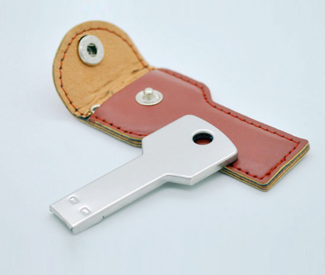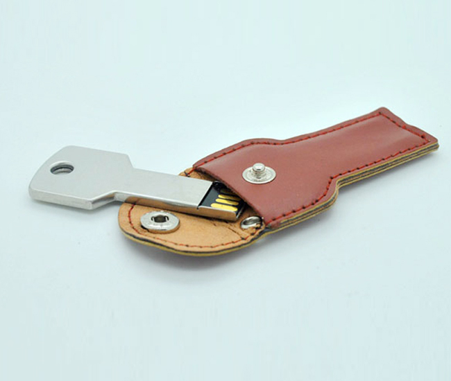鑰匙皮套U盤是探碩科技最新推出的商務禮品U盤,皮革和金屬兩種材質結合,設計別致極具個性。機身采用全金屬一體式鍛造,金屬外殼上可以鐳雕或印刷公司logo及圖案,永不掉色,更好提升公司形象。金屬鑰匙U盤外加一個皮具保護套,皮具讓人有厚實的感覺,看起來非常的大氣,時尚。皮革最大的優勢是經久耐用,更能保護優盤usb不容易碰壞。相信客戶拿到這款高大上皮套禮品U盤會非常滿意。
