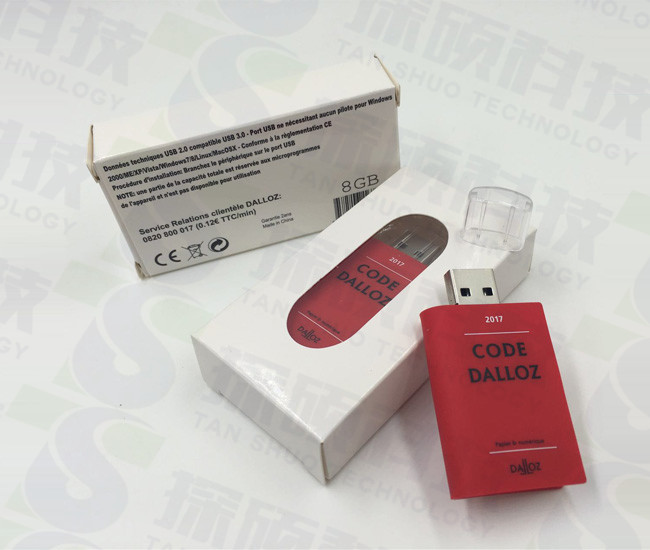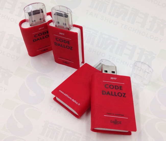 pvc軟膠書本U盤 Code開模定制U盤贈品,作為Code de procédure civile 2017編碼編程新書發布會贈品。書本U盤采用pvc軟膠材質制作,搭配塑膠亞克力帽子,非常的精美大方。U盤正反面印有公司logo和網址,更好的達到宣傳效果。pvc書本U盤產品結構設計簡單大方,使用起來相當便攜,另外U盤在容量可以定做都不同大小,是一款出版社,教育,雜志社很受歡迎的禮品U盤。