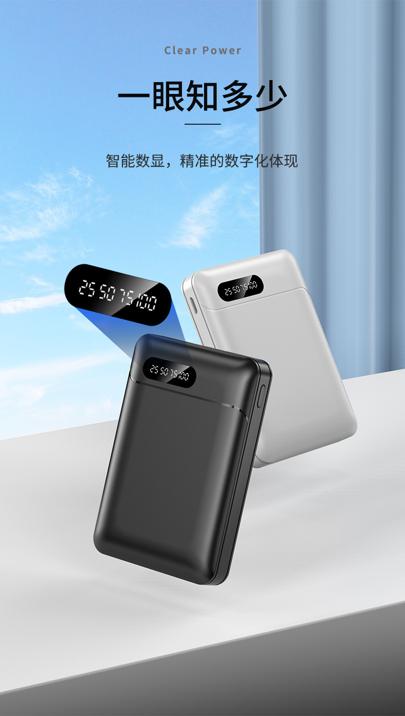 產品功能:數字電量顯示,Type-c+Micro 輸入;自帶強光手電筒